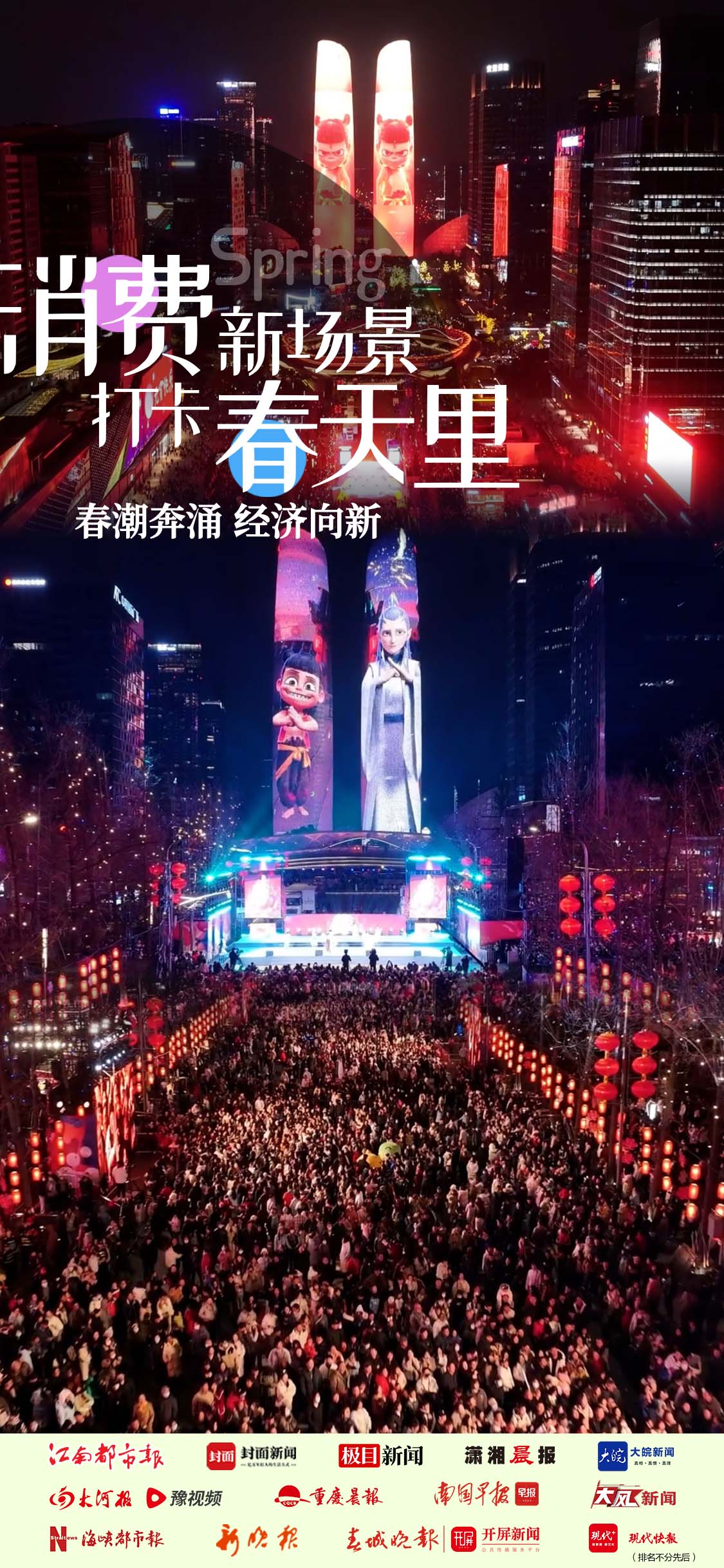 固然,交子大路的“火”不仅仅哪吒,本年元宵节,紧邻天府双塔的成都高新区交子大街灯火妍丽,天府双塔灯光与张灯结彩的街谈交相衬映,总长1.7千米的交子大路东谈主满为患,成都高新区企职业单元的后生职工代表、“蓉漂”代表及东谈主才代表,共同构成千东谈主跳舞扮演团队,现场,更有万东谈主皆诵,场地极度轰动。